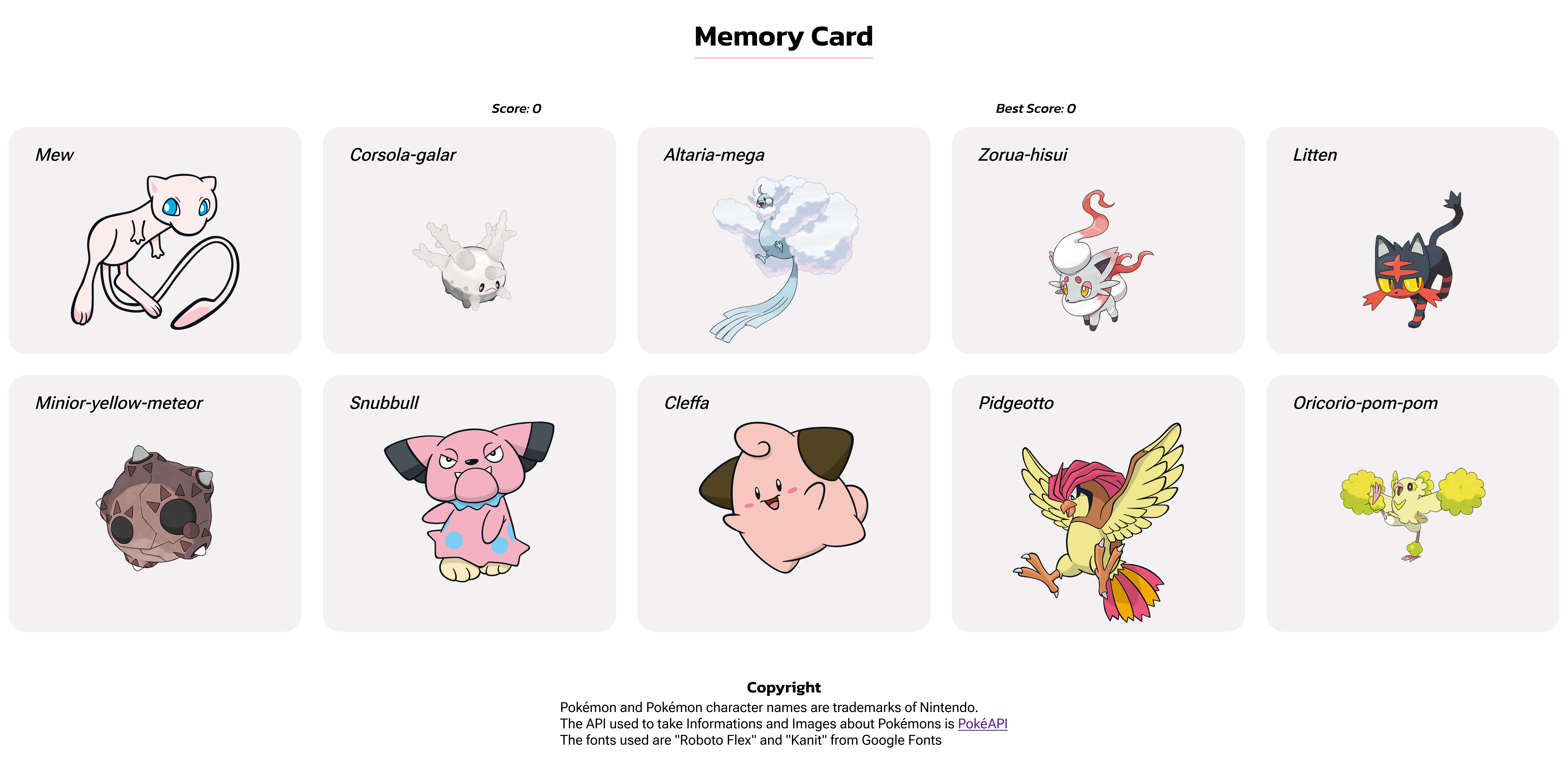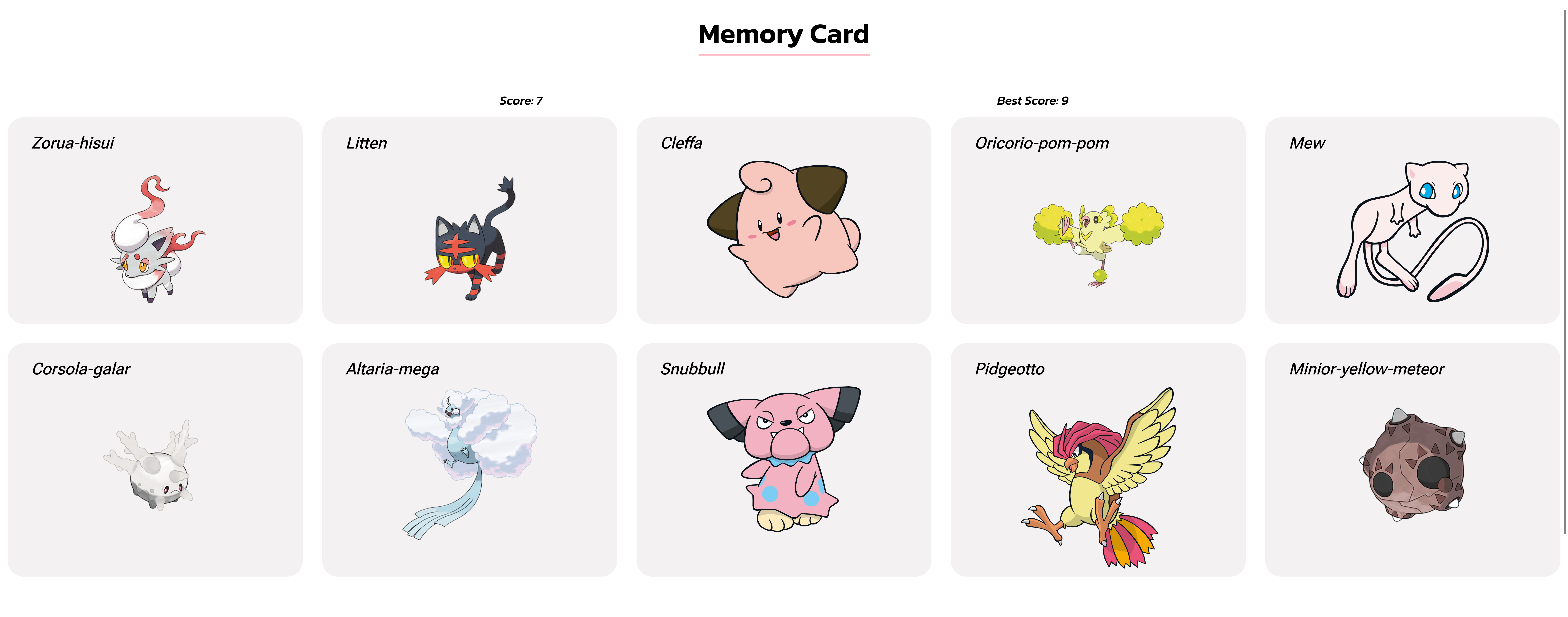 This is the game 'Memory Card' where every click all Cards get randomised. I've made it in React with the help of Javascript. It's from the course "The Odin Project"
